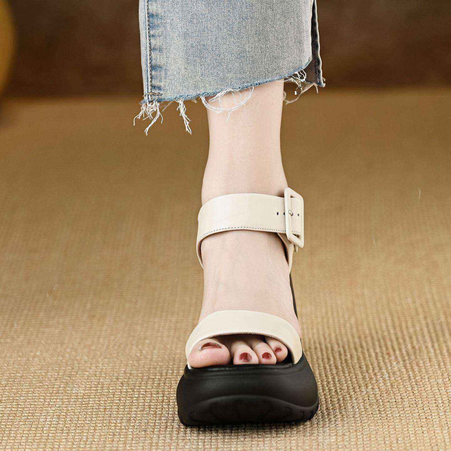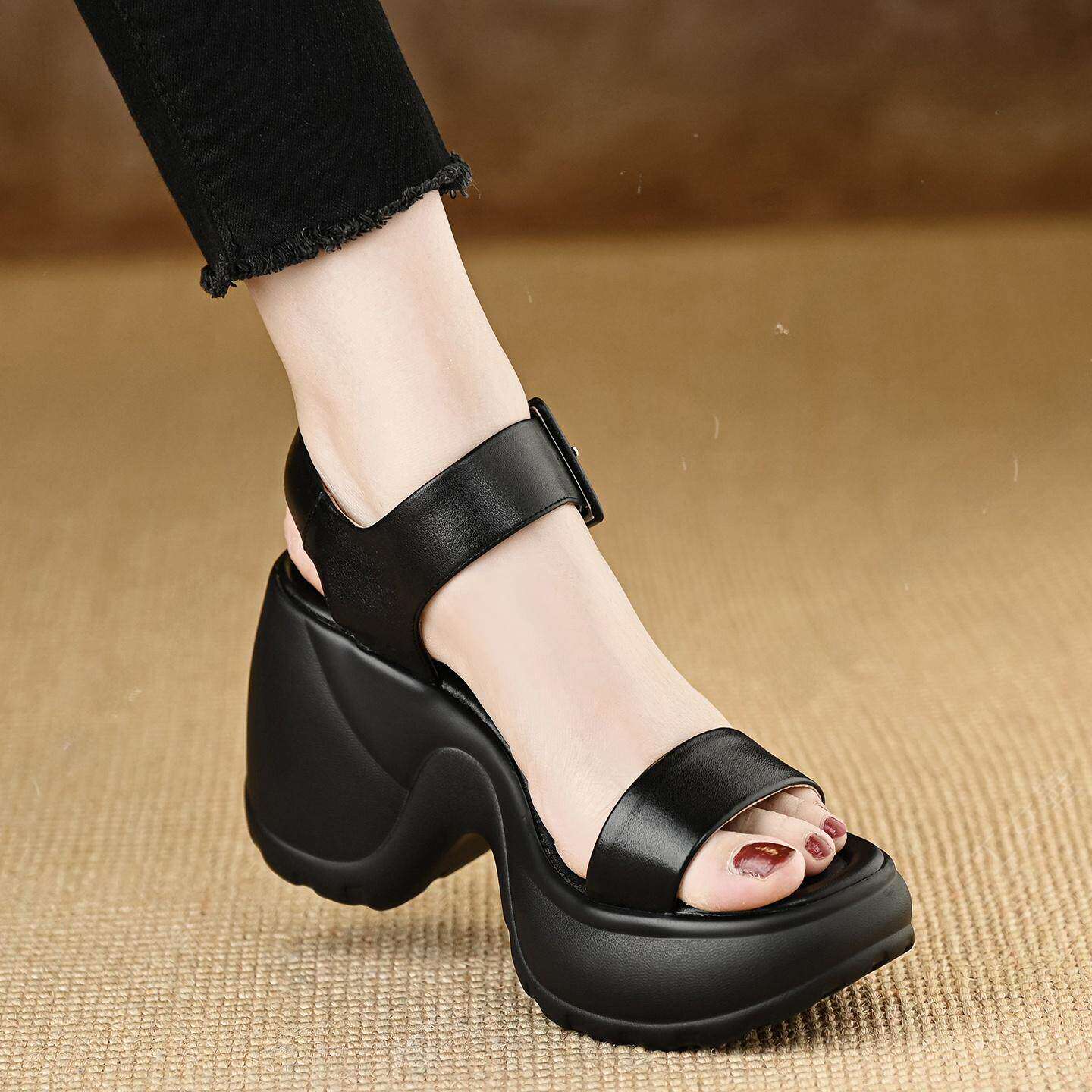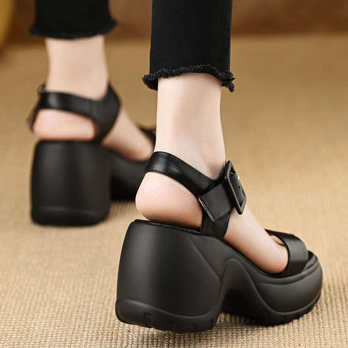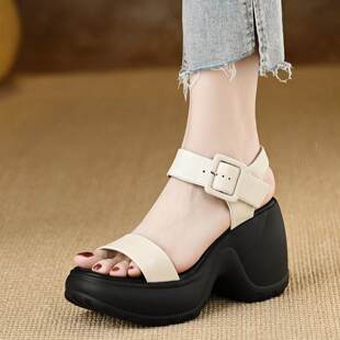 一字扣带露趾防水台高跟罗马鞋 爆款 女2026年新款 10cm坡跟厚底凉鞋