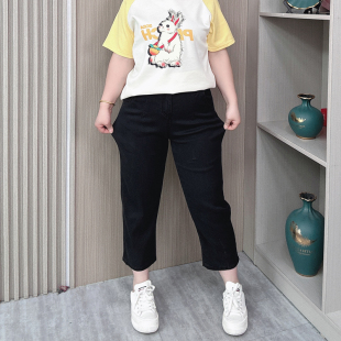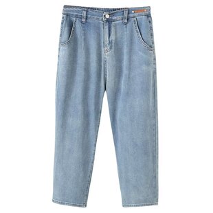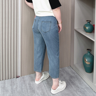 胖mm高腰弹力显瘦冰丝阔腿裤 夏季 女大码 天丝九分哈伦牛仔裤 子 薄款