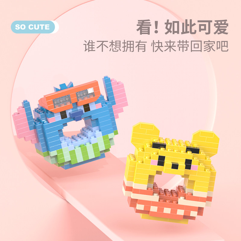 甜甜圈卡通公仔积木微颗粒儿童拼图玩具益智拼装 动物男孩拼插礼物