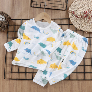 薄款 夏季 小孩宝宝空调服春秋 家居服套装 儿童睡衣纯棉男童女童长袖