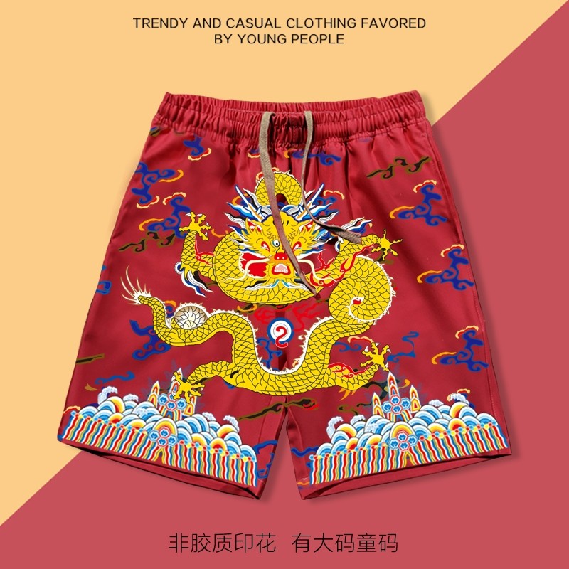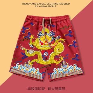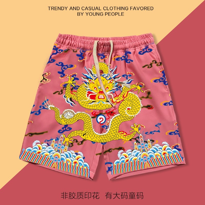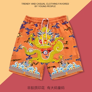 男个性 透气速干沙滩裤 宽松大码 国潮龙袍潮流夏季 休闲五分裤 短裤