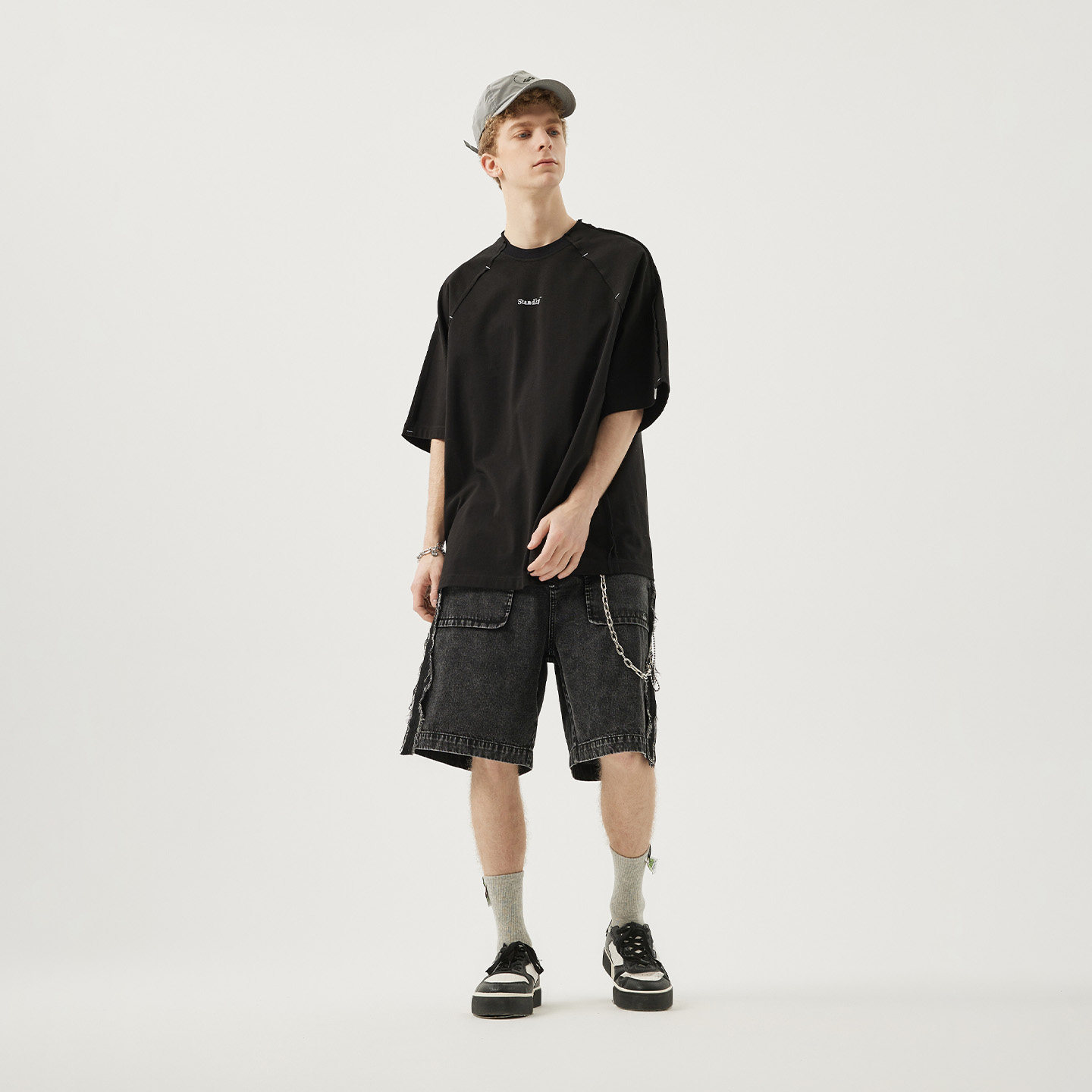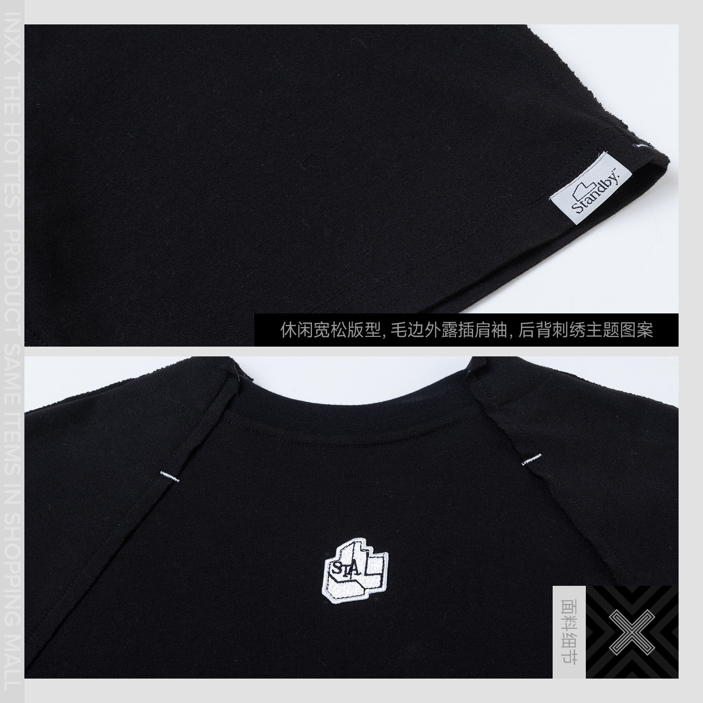 打底衫 明星同款 T恤基础logo长袖 Standby黑白插肩短袖 男 INXX