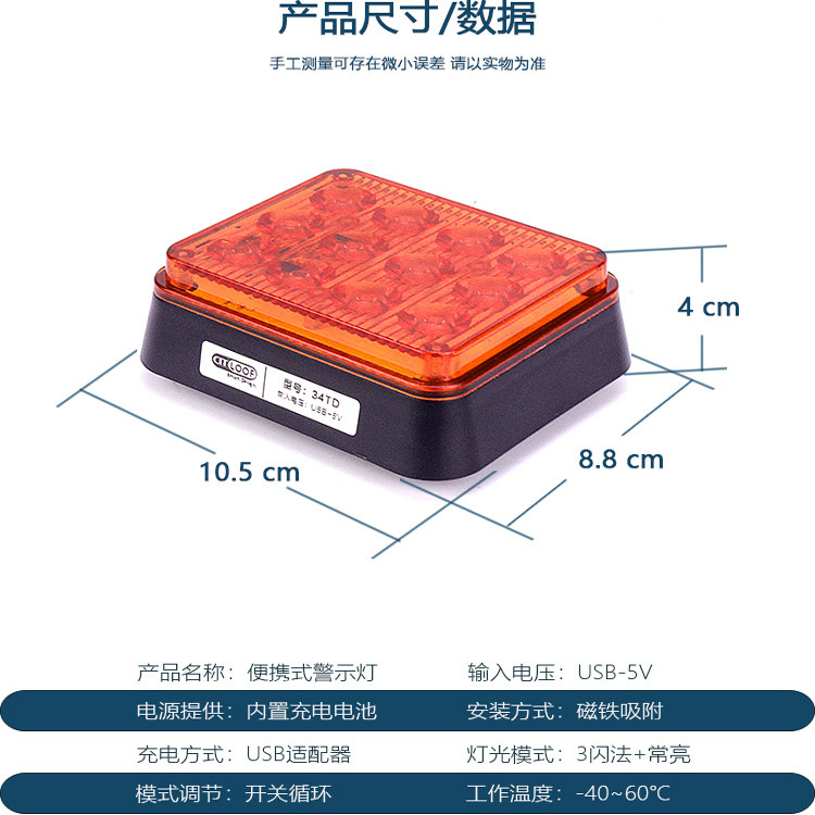 车载大件运输警示灯防追尾充电磁吸路障施工爆闪灯便携式 应急灯