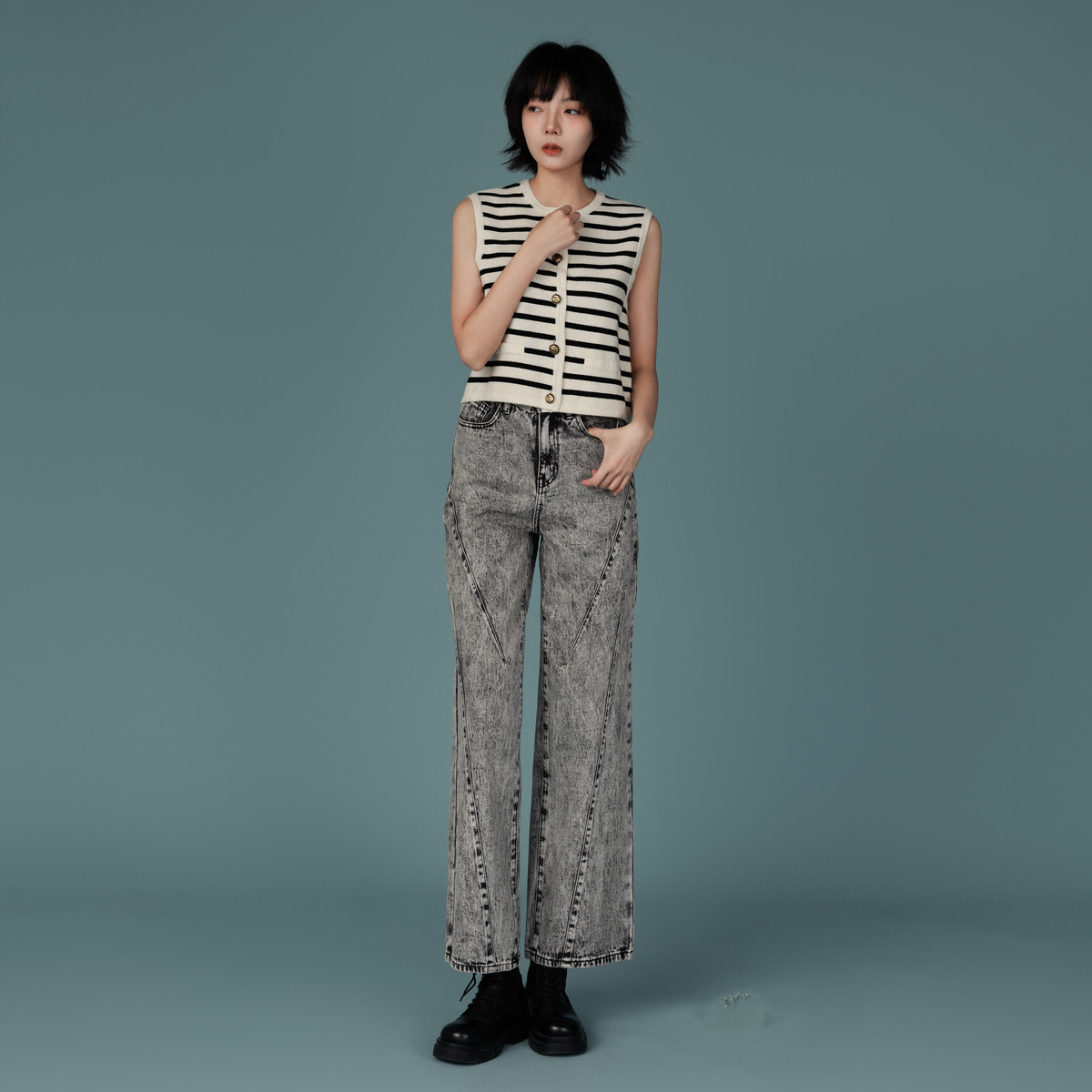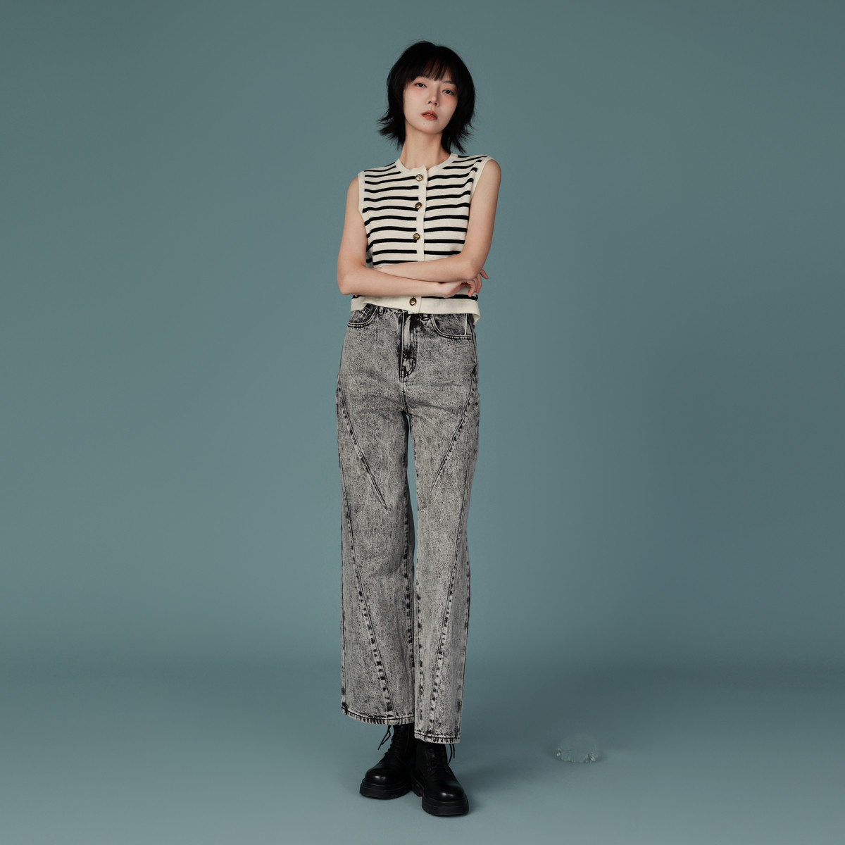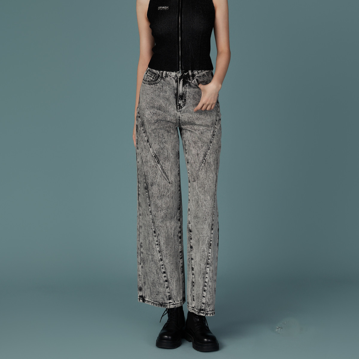 垂感阔腿百搭直筒显瘦裤 饭饭又饿了复古水洗工装 款 女秋季 子 牛仔裤