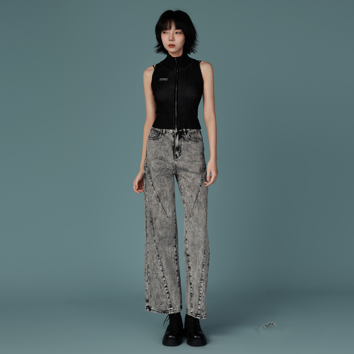全棉高个子长裤 pusumede黑色阔腿牛仔裤 女复古宽松直筒高腰休闲裤