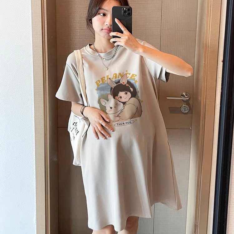 遮肚中长款 孕妇装 纯棉连衣裙休闲显瘦韩版 短袖 T恤裙 女夏2025新款
