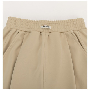 银泰百货 长裤 RECTO春季 米黄色宽松休闲运动女士松紧腰阔腿裤