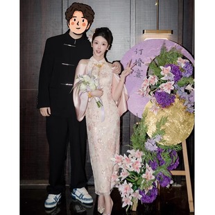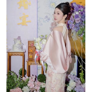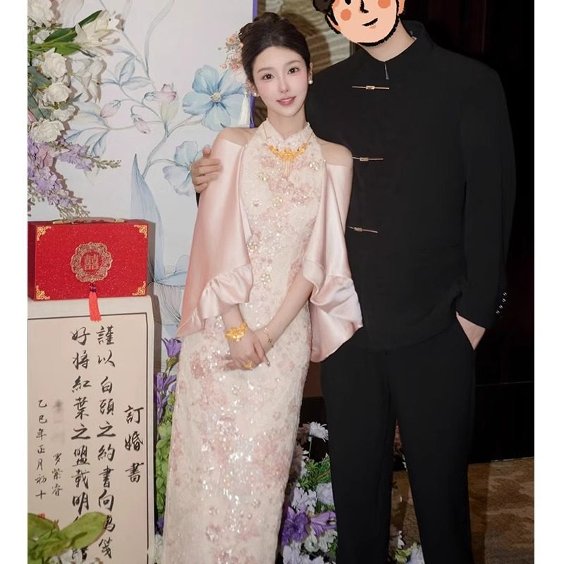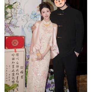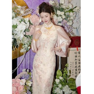 粉色旗袍敬酒服新娘2025新款 订婚礼服女轻奢小众晨袍 高级感新中式