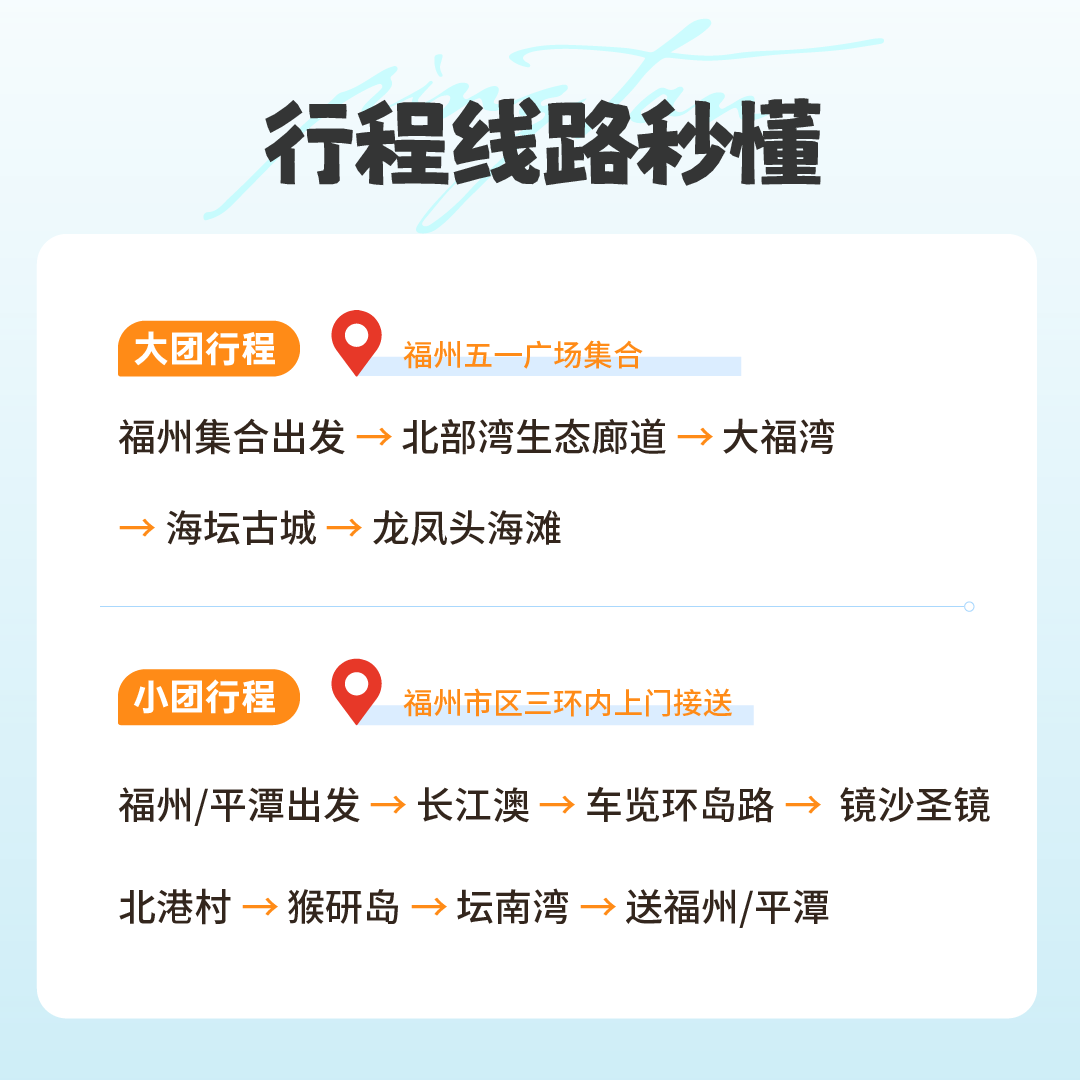 福州出发平潭岛跟团游一日游北部湾长江澳镜沙猴研岛龙凤头包车游