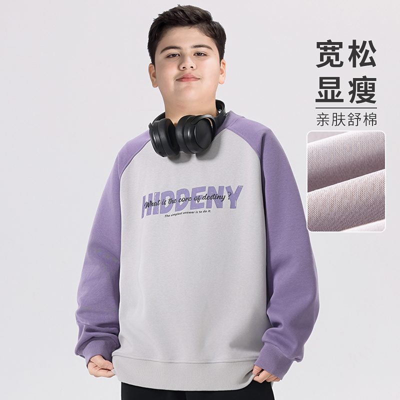 初中学生打底衫 2025新款 青少年上衣 男童卫衣加肥加大春秋装 胖童装