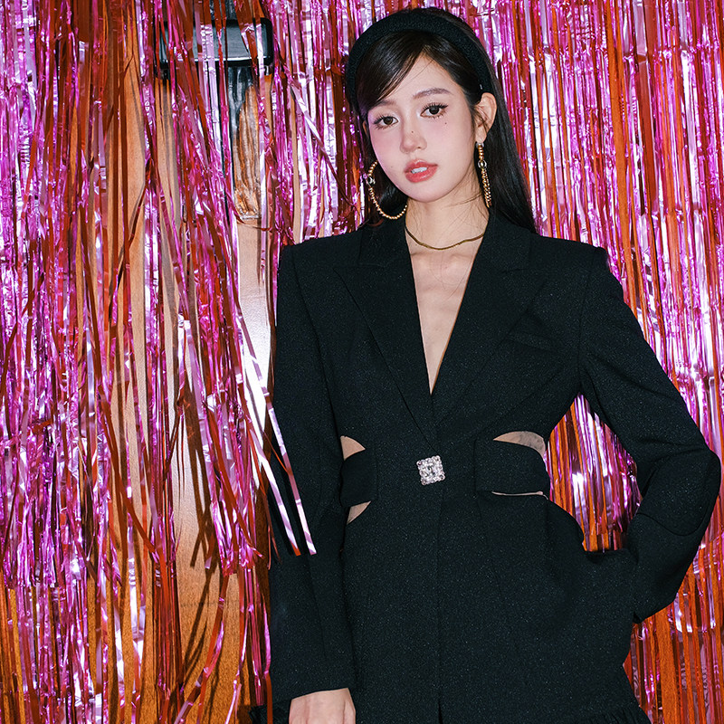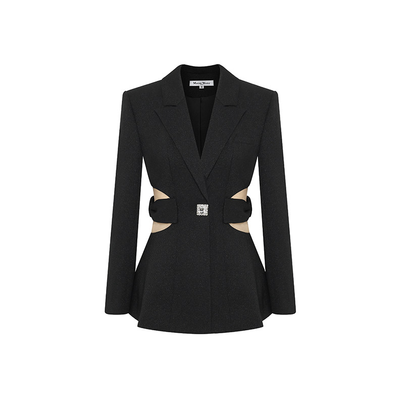 黑色细闪网纱拼接收腰西装 浪姐苗苗同款 上衣 Wester夏季 Maison