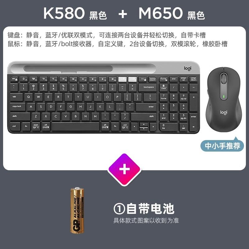 电脑拆包 静音办公家用笔记本台式 罗技K580 M650无线蓝牙键盘套装
