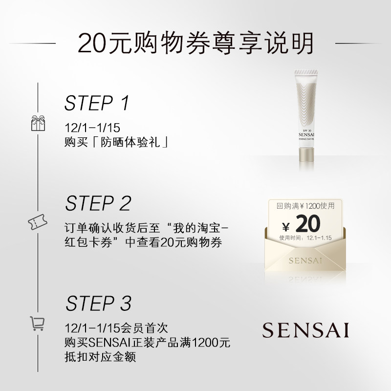 回购券享SENSAI防晒4.6ml体验礼 购20元 顺手买一件