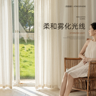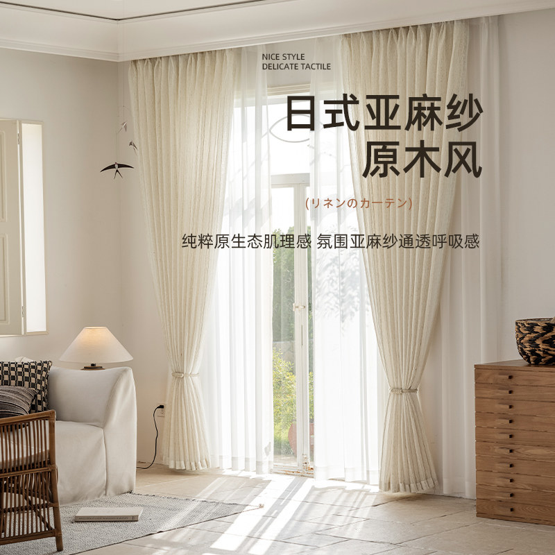 绍兴柯桥日式 亚麻棉麻窗帘卧室客厅阳台民宿半遮光纱帘透光不透人