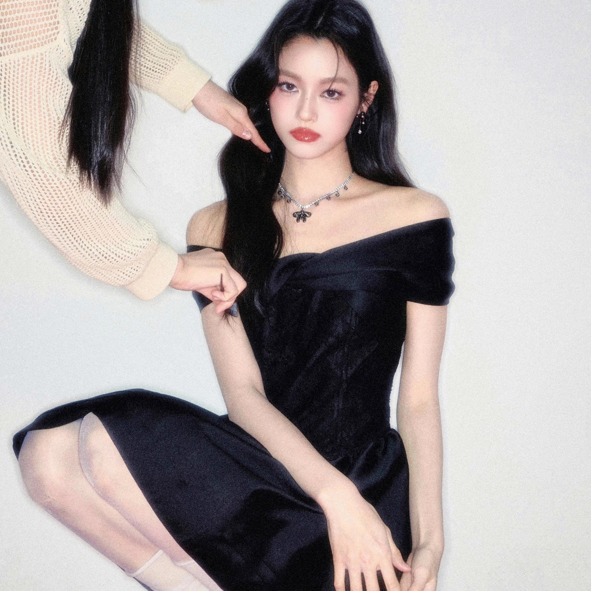 易碎商店·巴黎旧梦黑色蕾丝扭结一字肩公主裙生日连衣裙 现货
