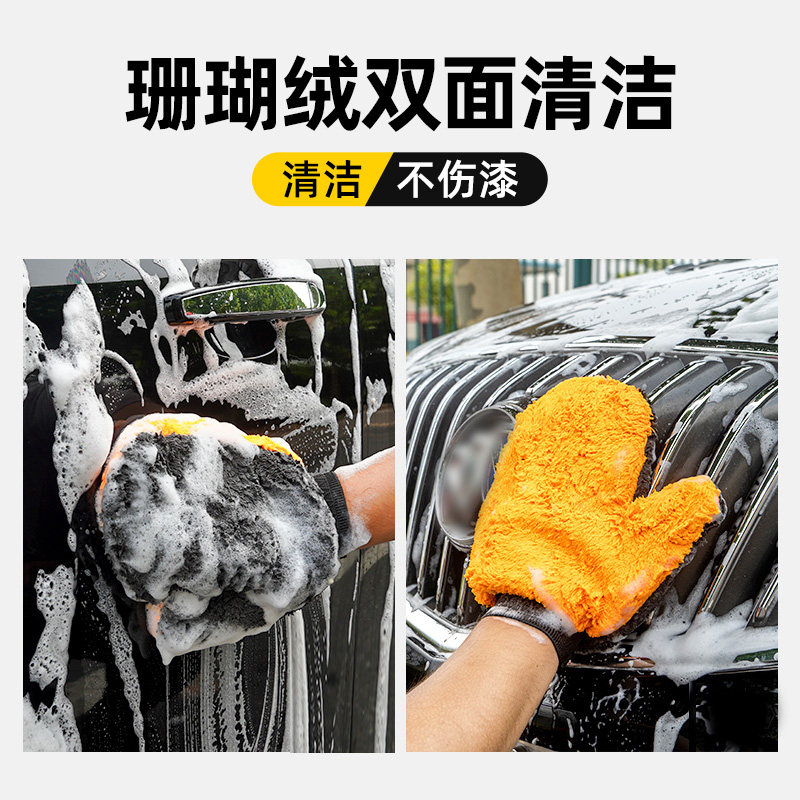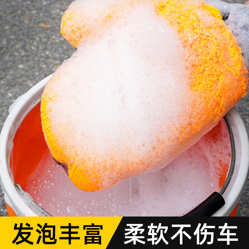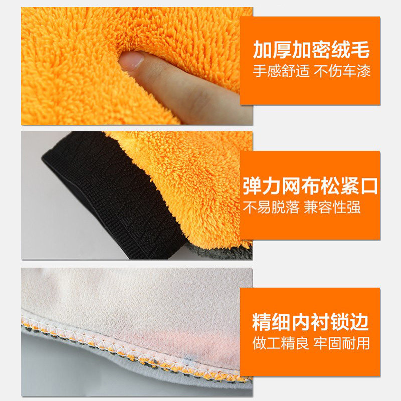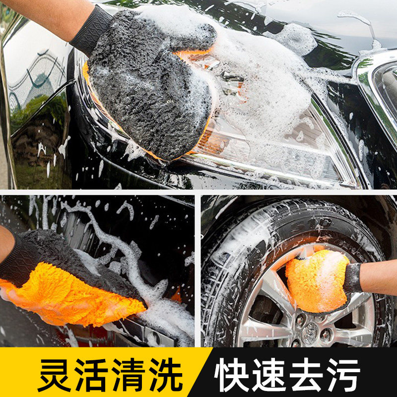 汽车洗车手套加厚熊掌擦车专用刷车不伤漆面雪尼尔绒毛绒抹布工具