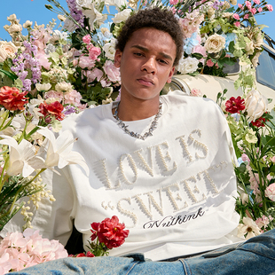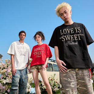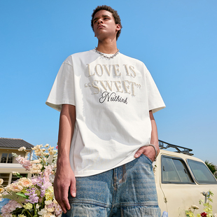 夏 复古重磅宽松男女2025新款 Nuthink重工刺绣珍珠字母T恤短袖 美式
