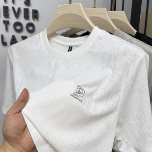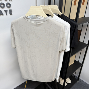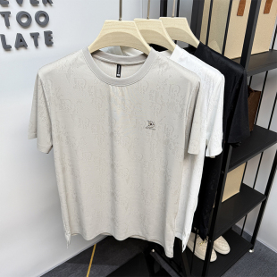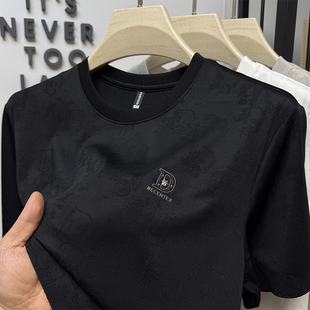 暗花休闲潮流体恤圆领薄款 夏季 滑料 t恤男士 高端品牌冰丝锦氨短袖