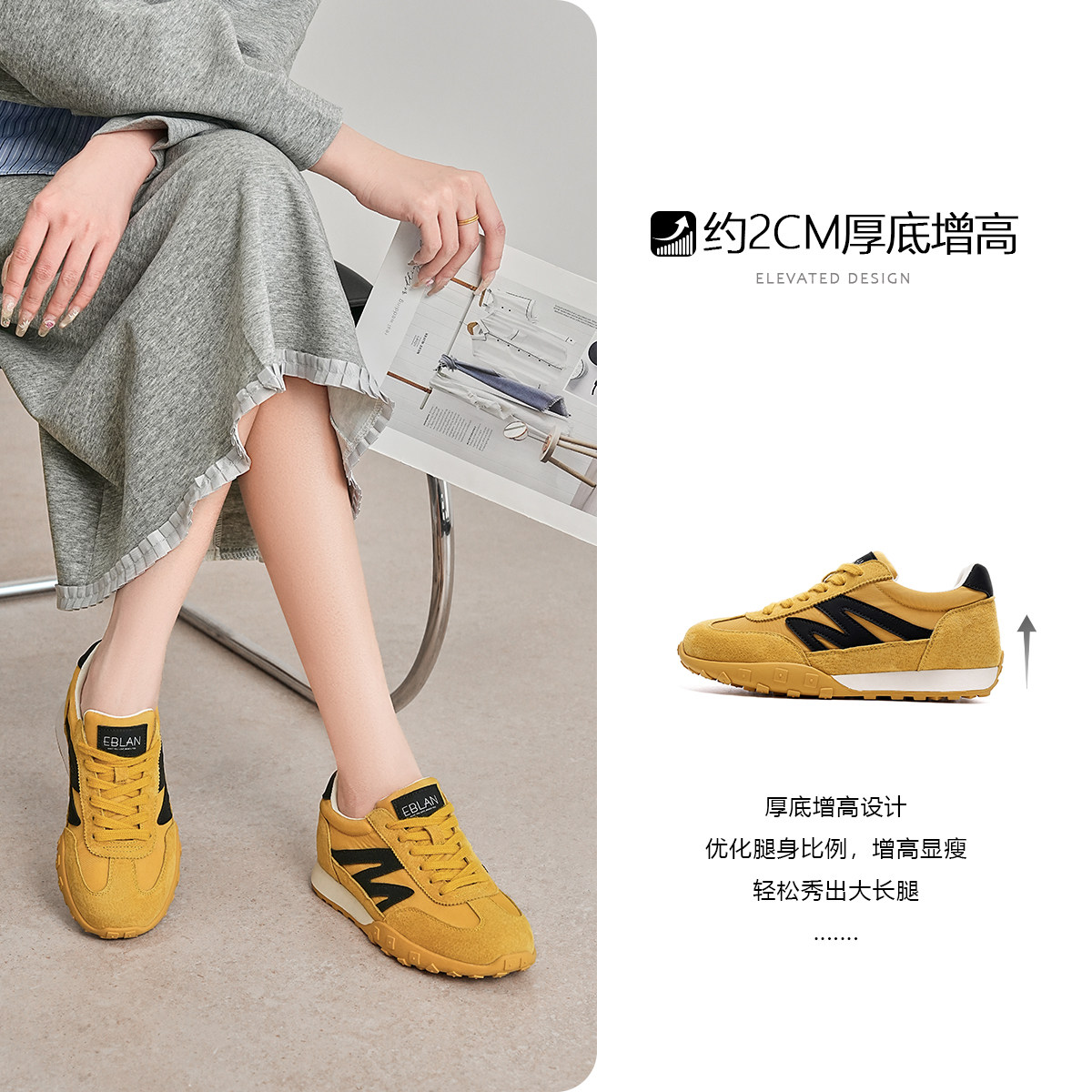 运动德训鞋 149清仓福利 女款 2025新款 EBLAN 厚底复古板鞋 伊伴