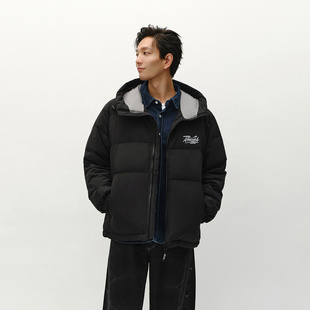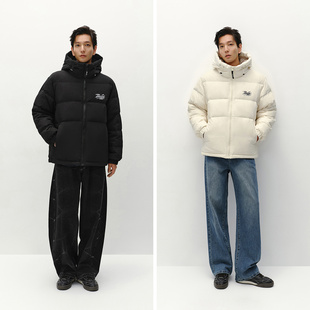 森马羽绒服男冬装 80绒子宽松连帽外套肌理感街头潮流字母印花上衣