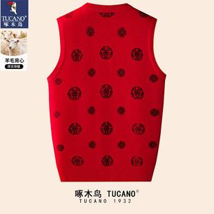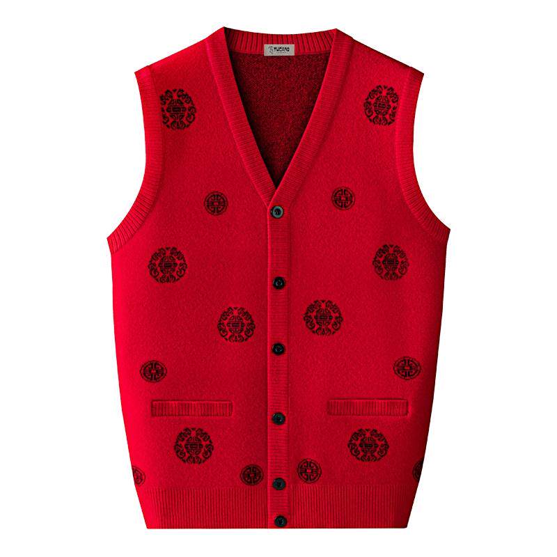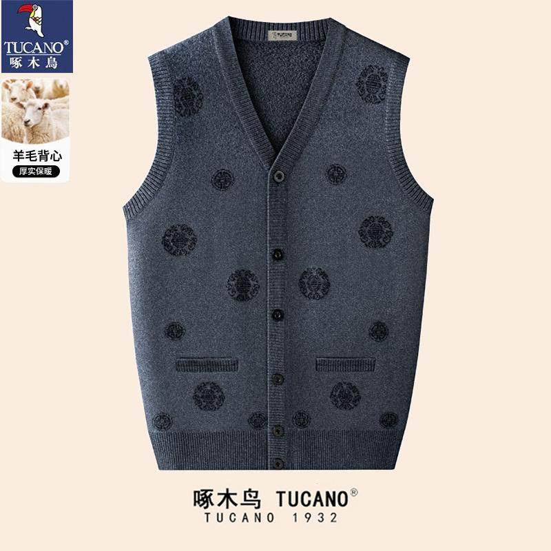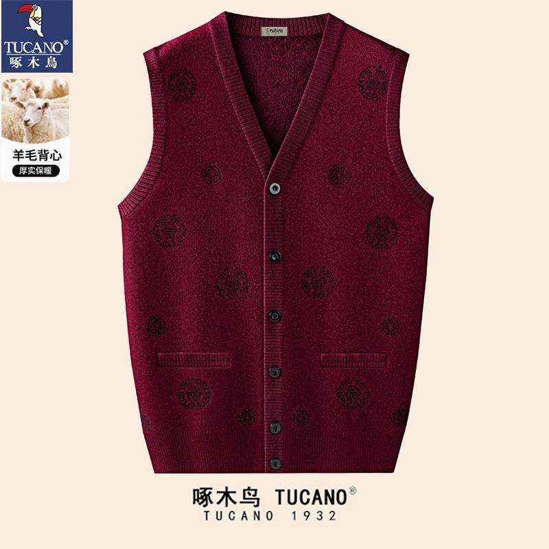 啄木鸟秋冬中老年背心男士 爷爷过寿生日毛衣 羊毛马甲加绒加厚唐装