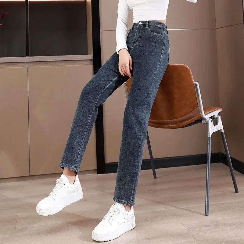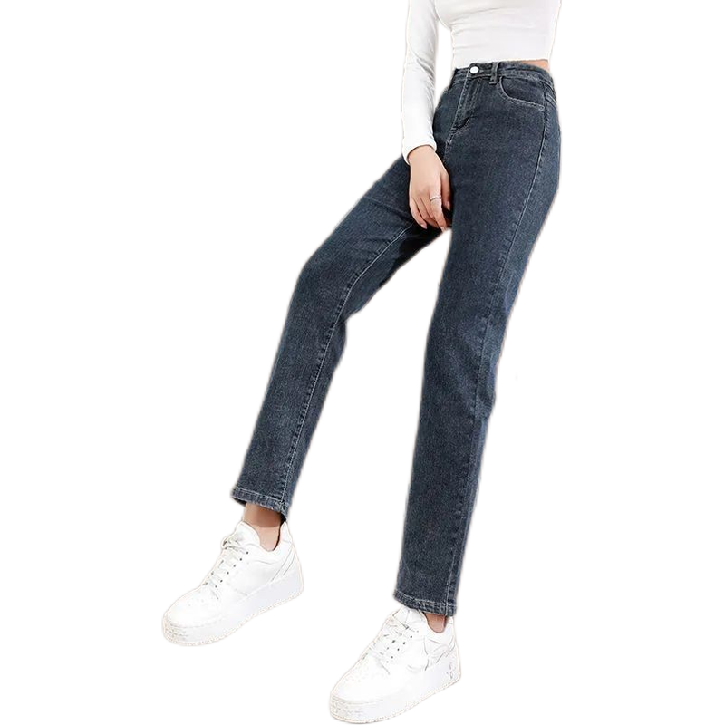 2024年秋冬加绒女新款 女九分弹力长裤 大码 直筒牛仔裤 烟管裤 牛仔裤