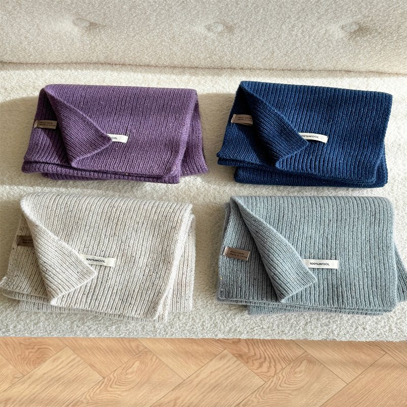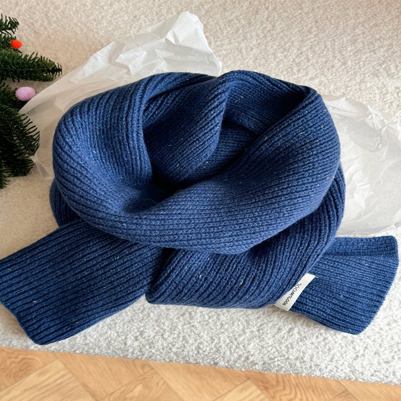 纯羊毛100%围巾男女秋冬加厚保暖新款 夹花彩点针织围脖柔软 韩版