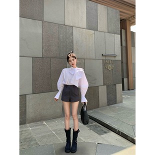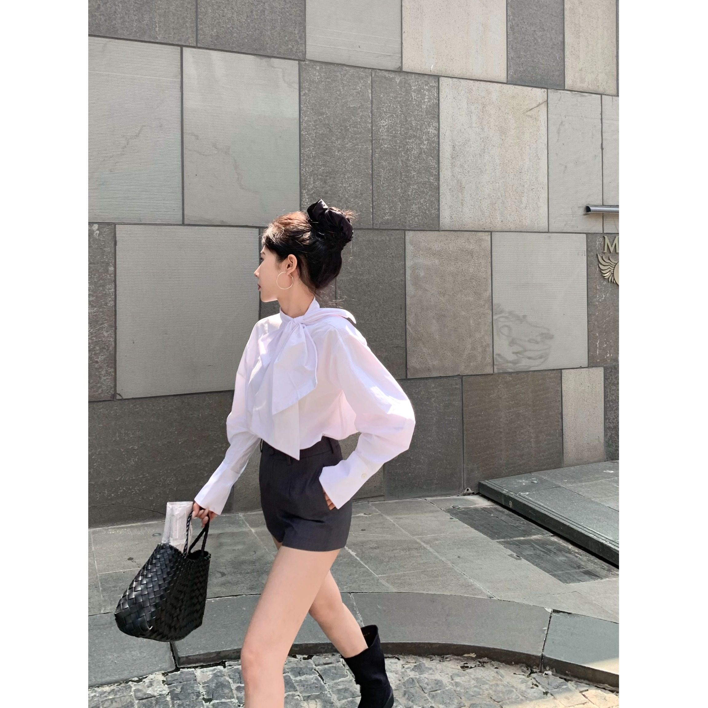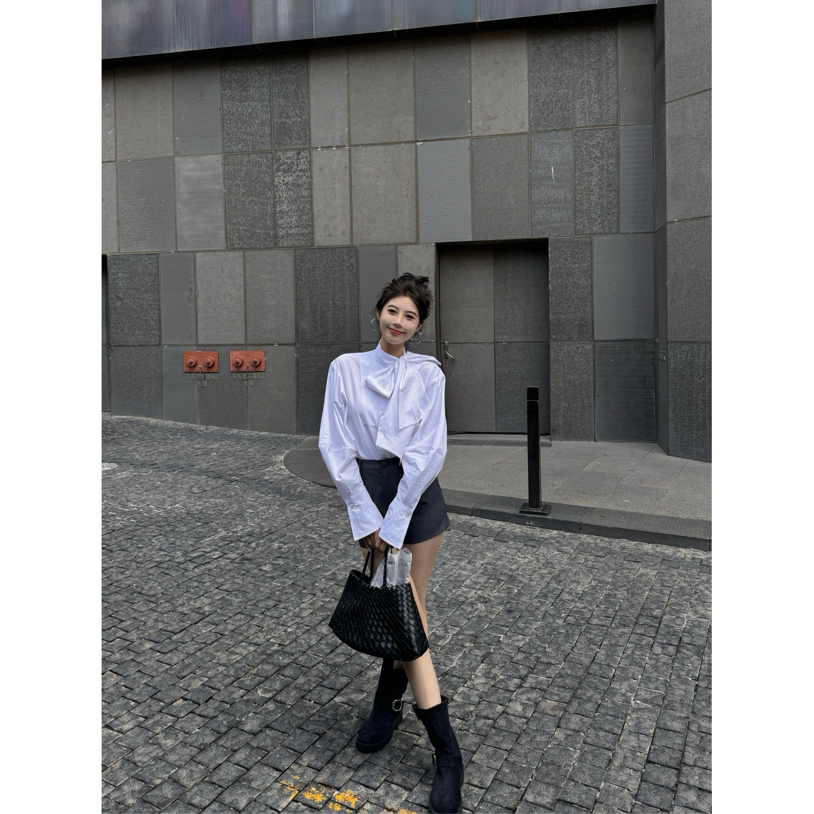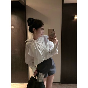 学院风蝴蝶结领带白色衬衫 衬衣 女设计感小众早秋独特别致绝美长袖