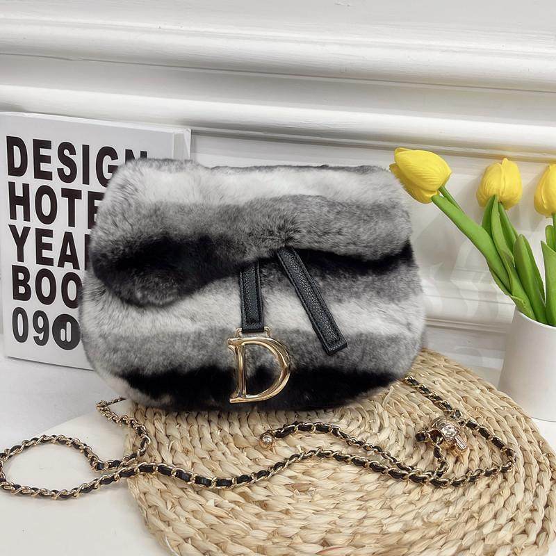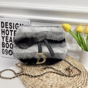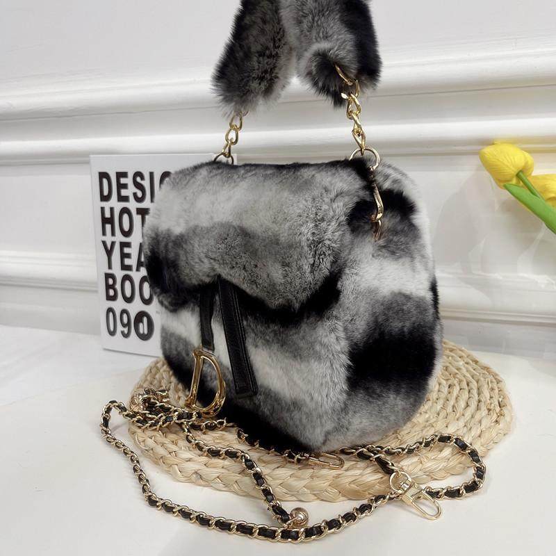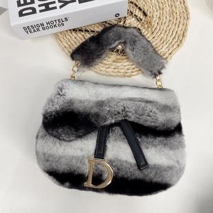 龙猫马鞍包獭兔毛皮草包包手拎女包新款 复古高级感斜挎百搭毛毛包