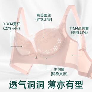舒适无钢圈文胸女士内衣 透气洞洞杯上调整型薄款 伊丝艾拉 春夏款