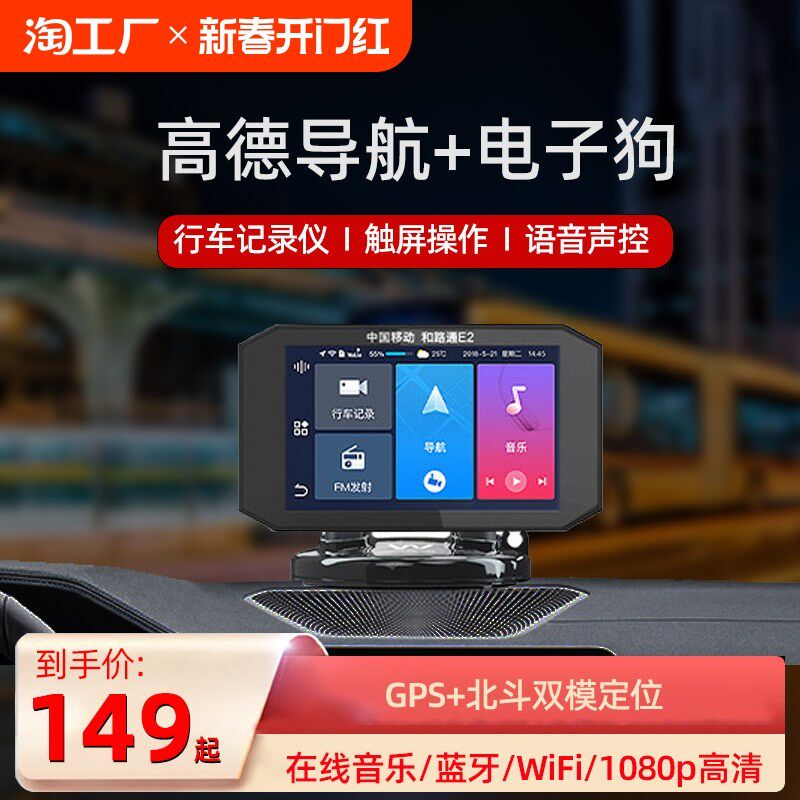 行车记录仪2024新款 车载导航电子狗停车监控一体机无线前后系统