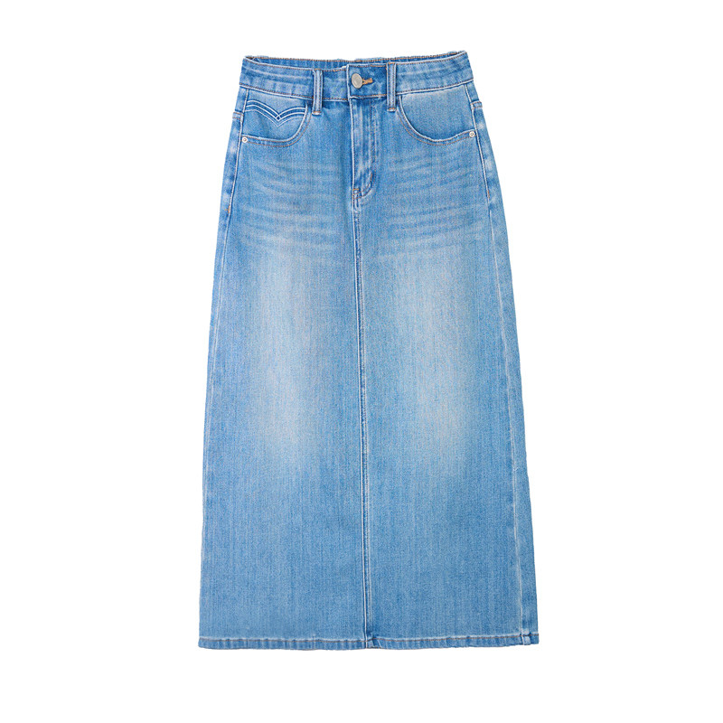 定制面料 蓝色包臀显瘦A字中长裙子 后开叉高腰牛仔裙女春夏新款