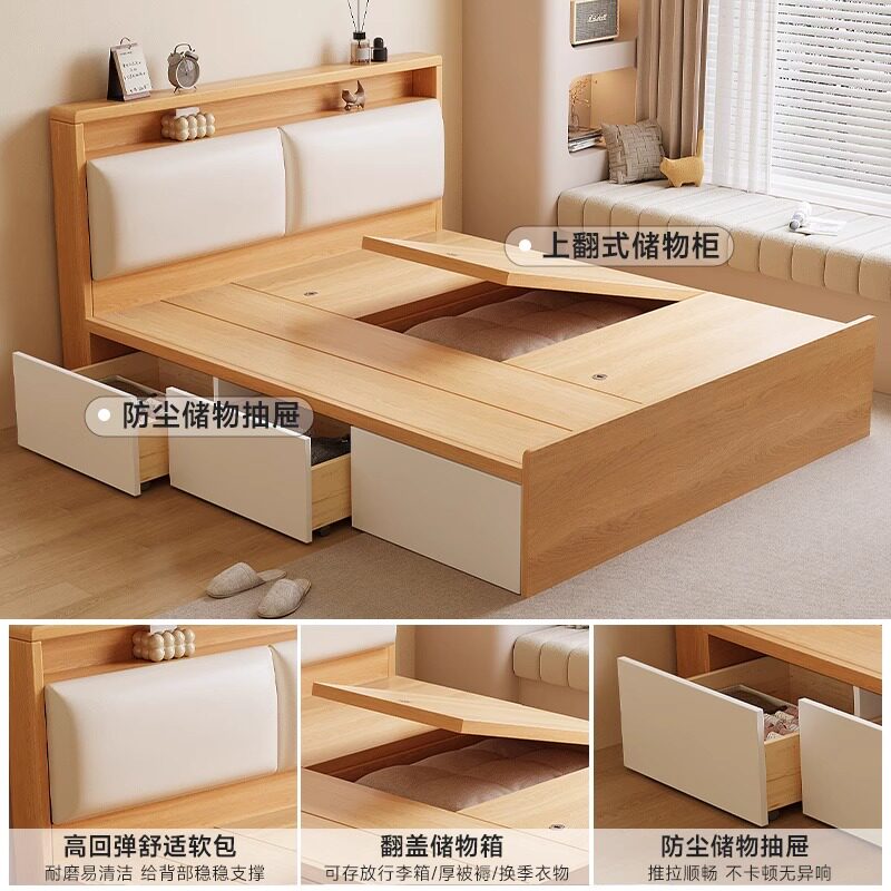 实木榻榻米新款 床架小户型地台定制1.35储物床卧室高箱单人双人床