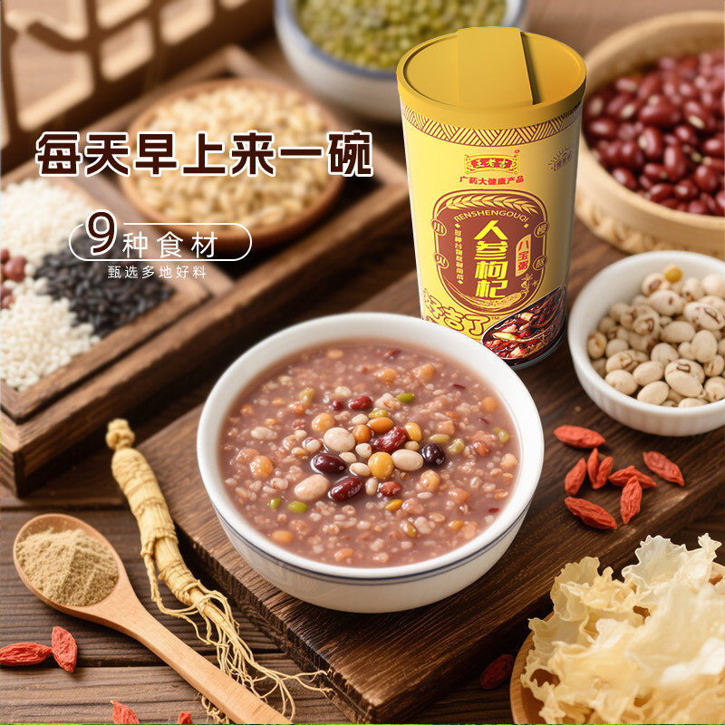 王老吉人参枸杞八宝粥320g整箱五谷杂粮营养速食粥代餐礼盒装