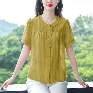宽松显瘦洋气小衫 中年妈妈棉麻短袖 夏装 女士2025新款 T恤上衣 衬衫