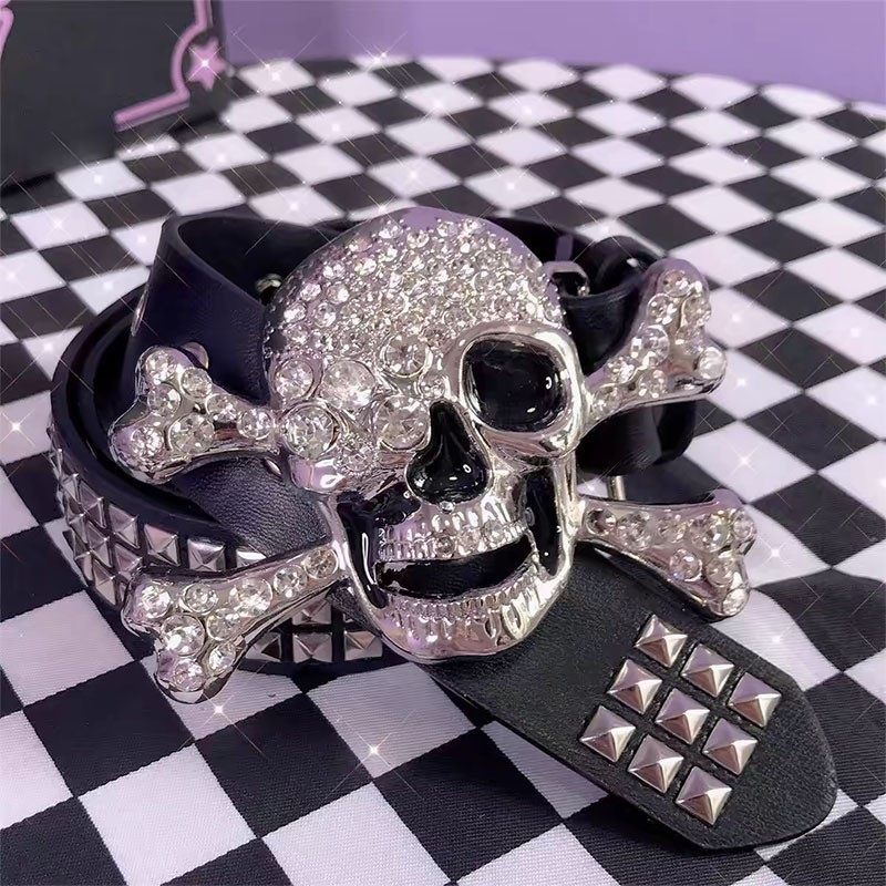 黑白骷髅印花皮带亚文化y2k辣妹亚比哥特百搭腰带