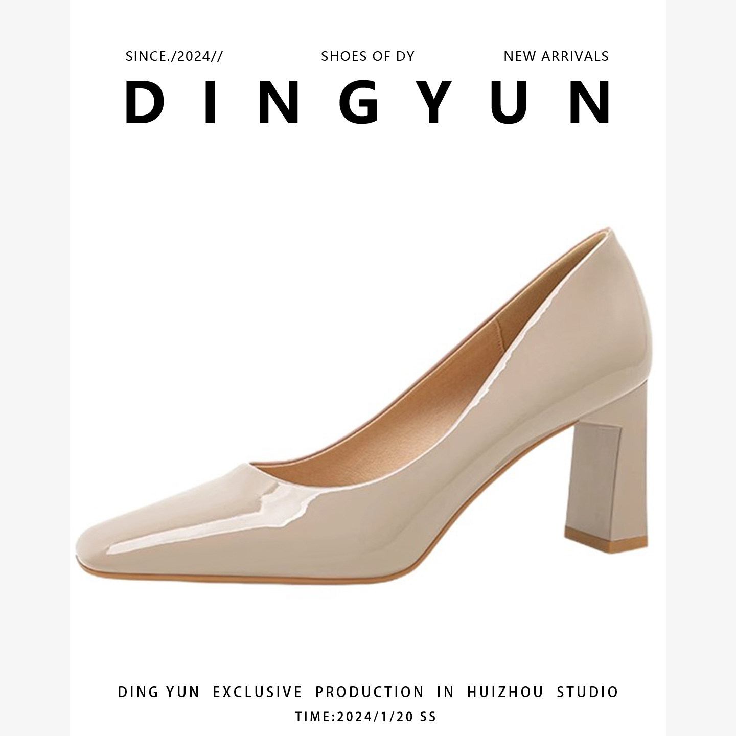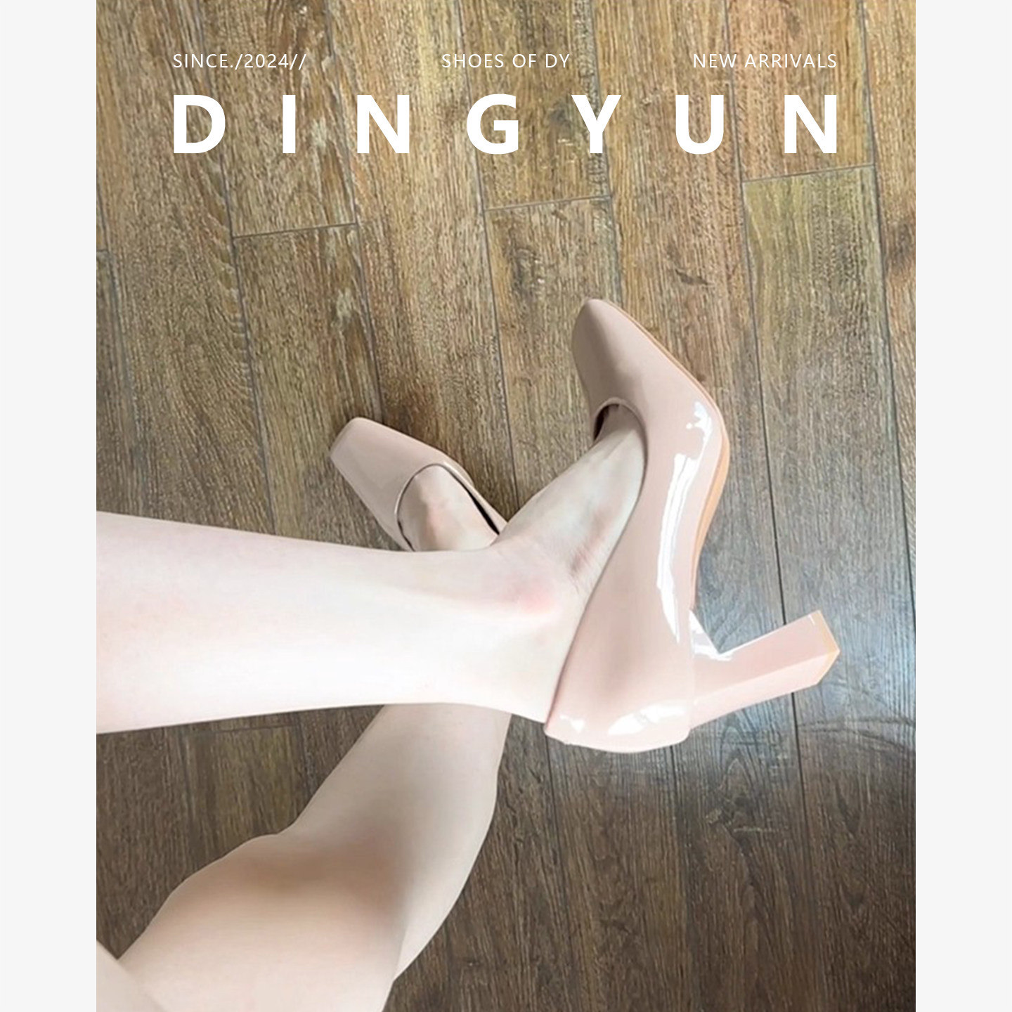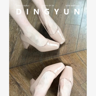 裸色粗跟单鞋 方头裸色气质法式 浅口春夏 dingyun丁允高跟鞋 羊皮版