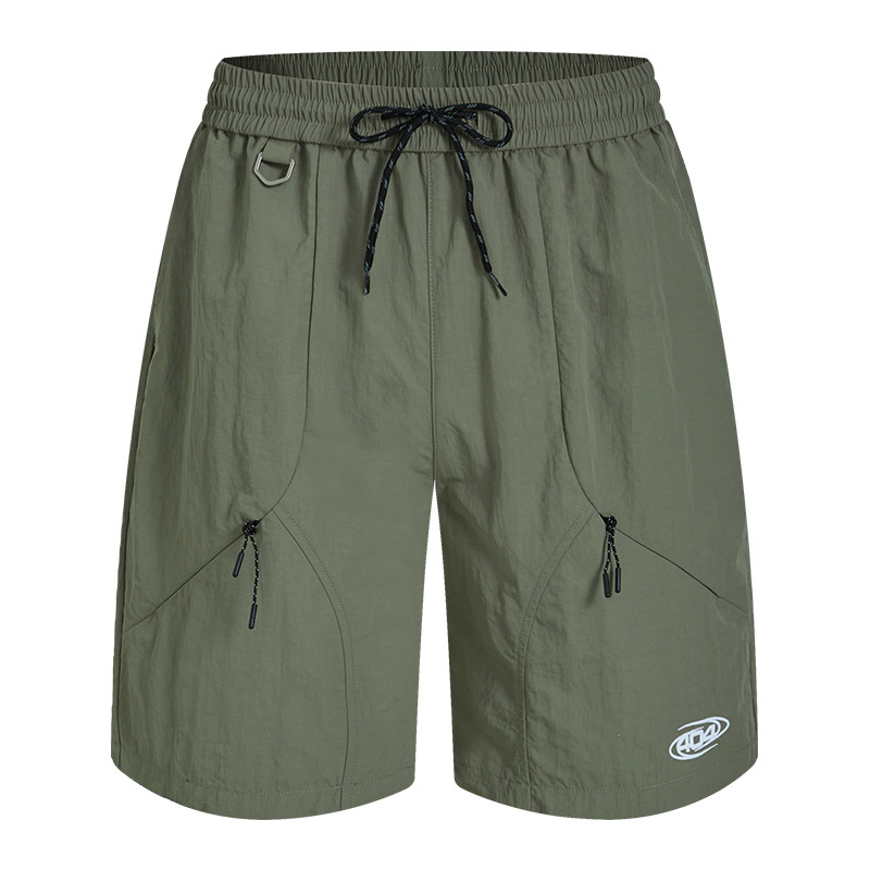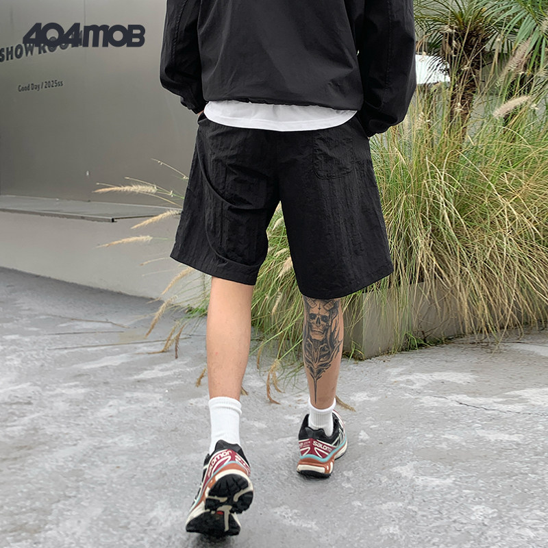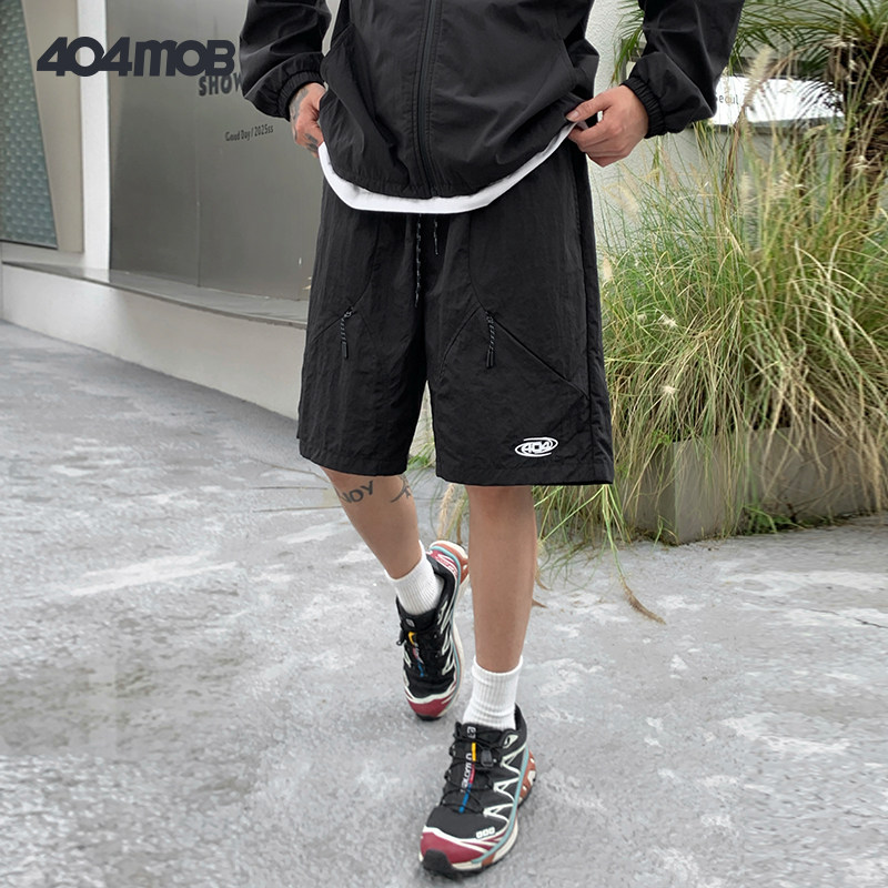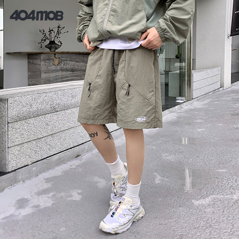 潮 五分裤 404MOB军绿色刺绣短裤 男女休闲微皱梭织宽松微弹耐磨夏季