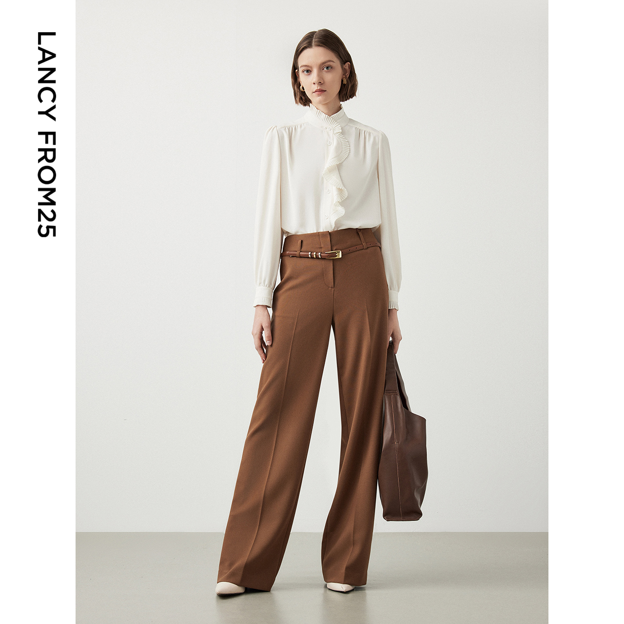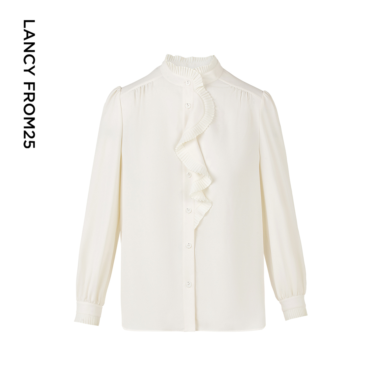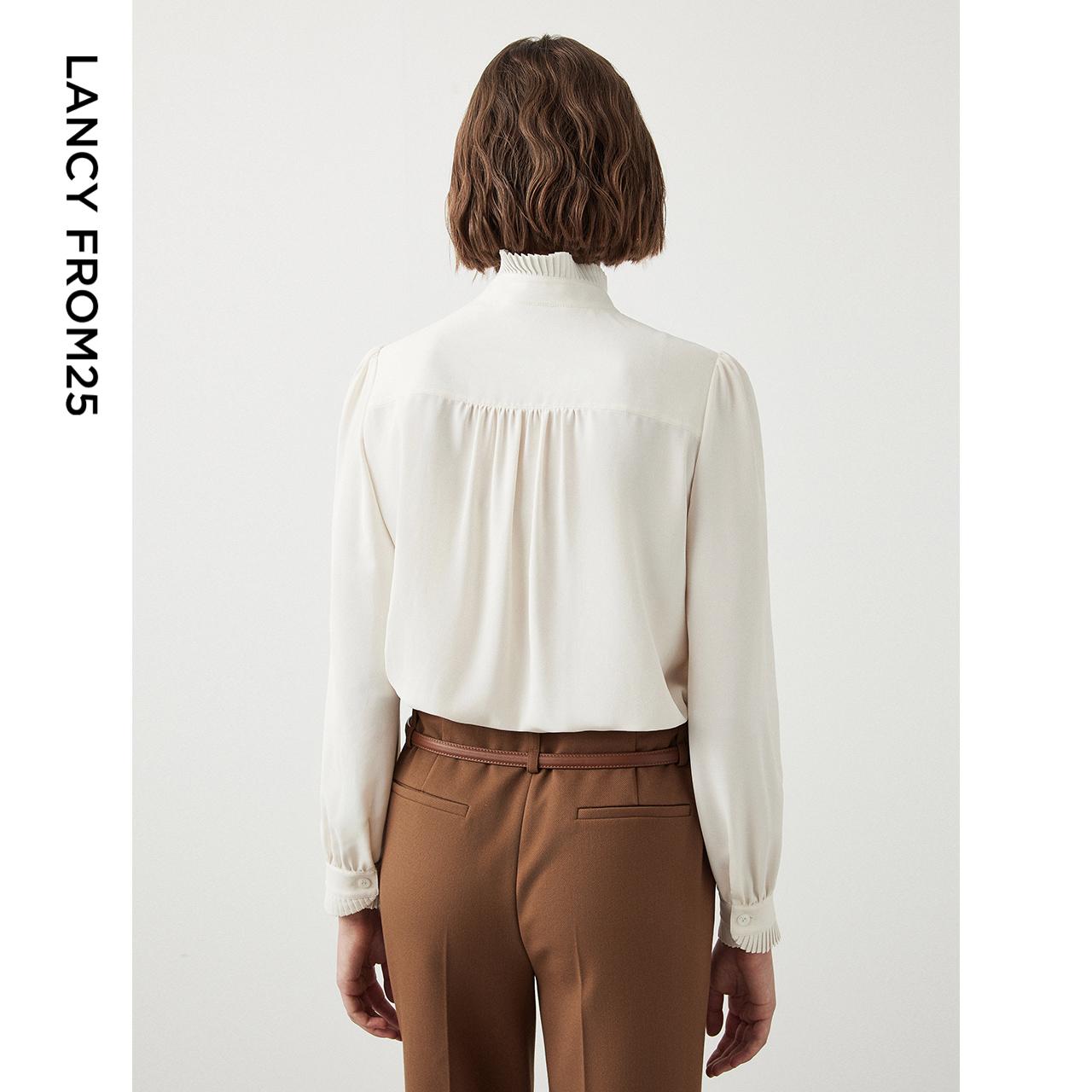 新款 朗姿法式 上衣冬季 衬衫 衬衣 宫廷风木耳边领气质通勤长袖