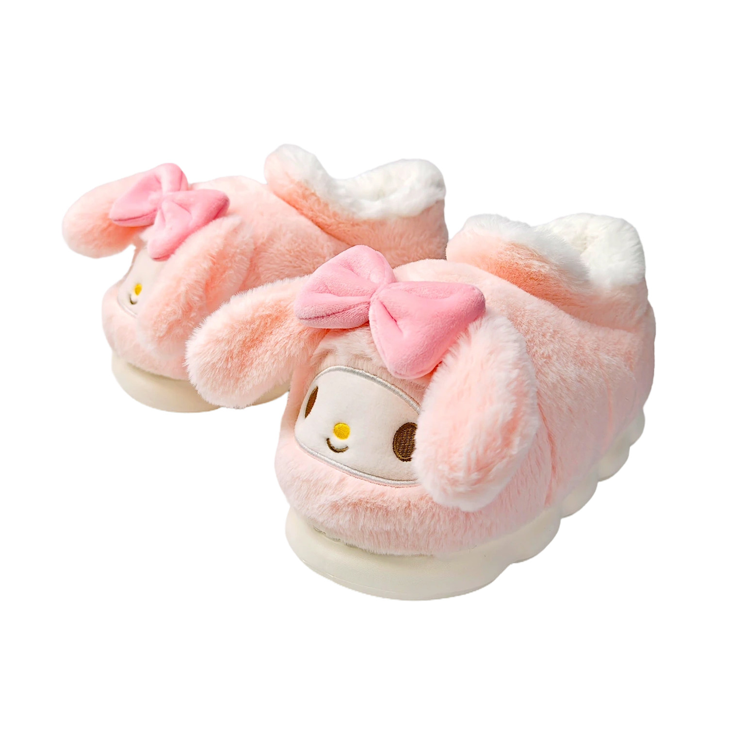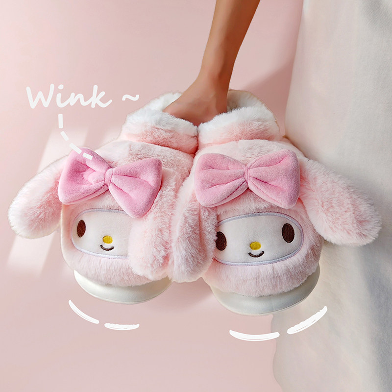 室内防滑保暖毛毛鞋 冬男女家居鞋 足弓 情侣樱桃小狗棉拖鞋 细细条