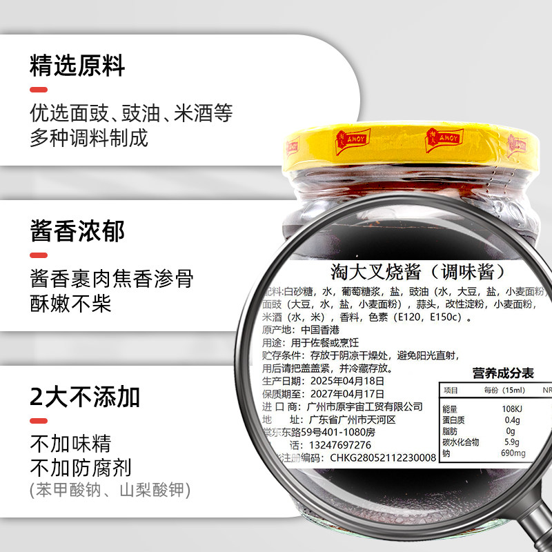 淘大香港进口叉烧酱275g零添加防腐剂广式 秘制蜜汁腌料家用调味料