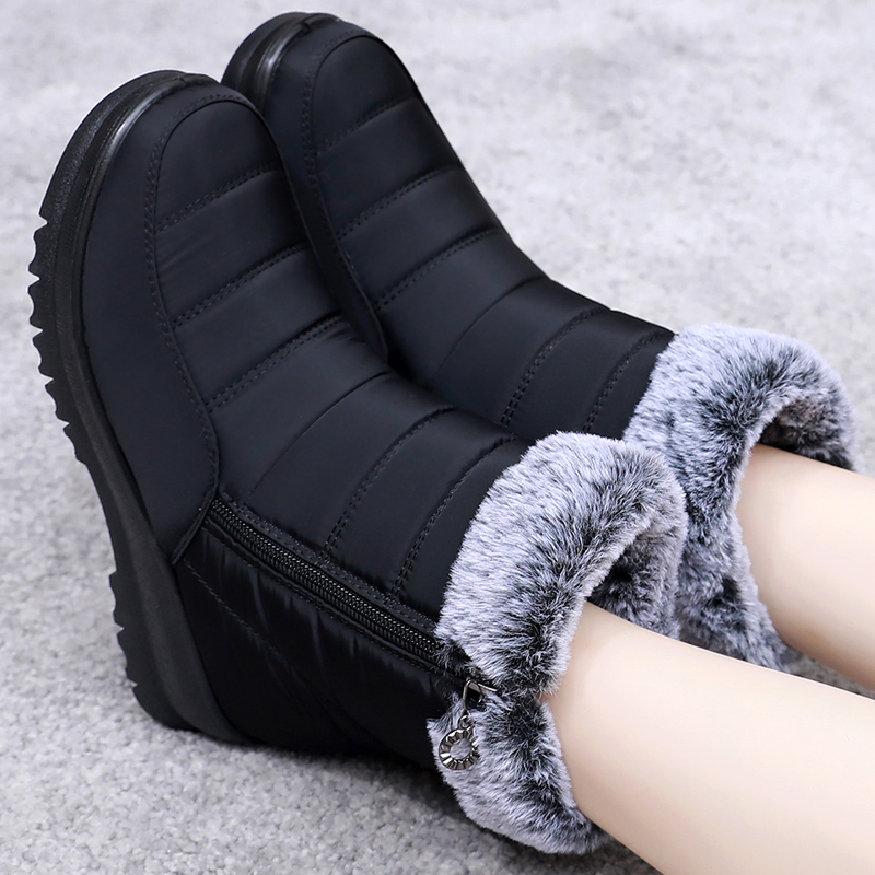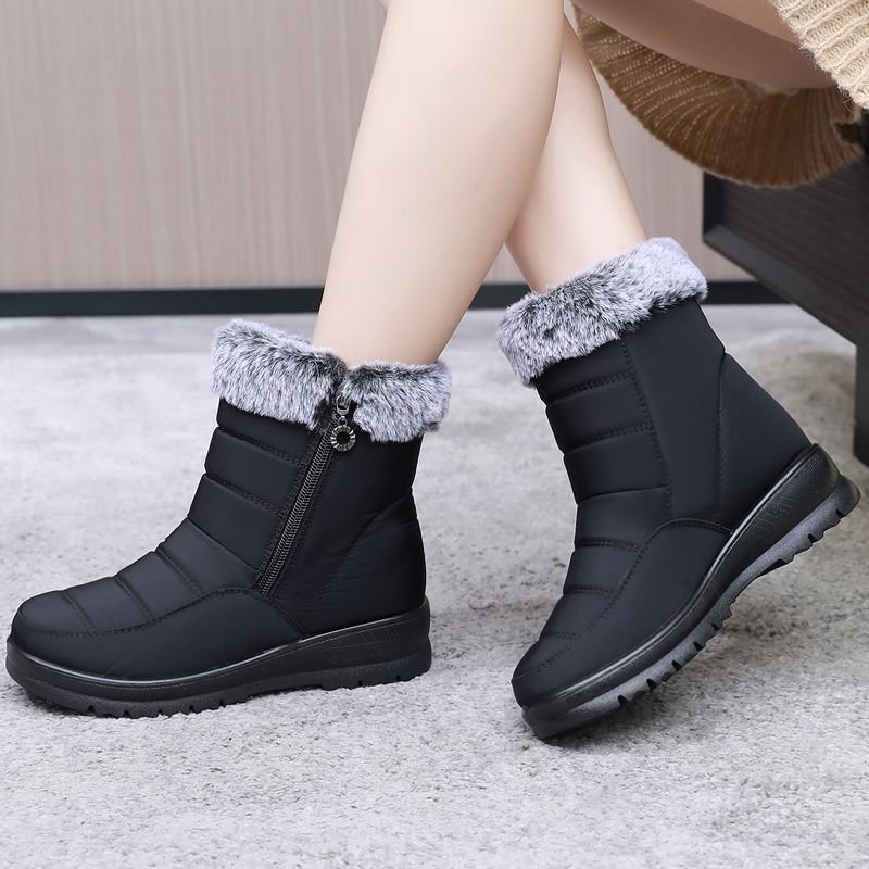 冬季 圆头中筒保暖雪地靴妈妈靴子女 休闲平跟中年加绒防寒加厚棉鞋