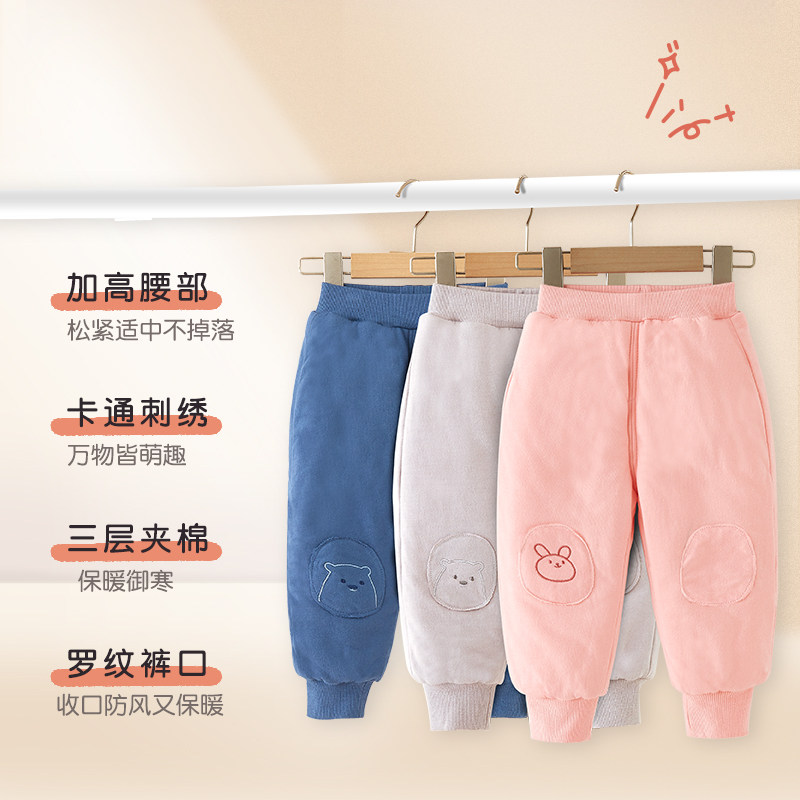 保暖婴儿冬装 儿童棉裤 宝宝三层加厚外穿长裤 子秋冬季 女童夹棉裤