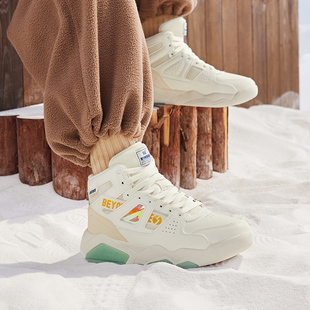 男款 高帮女小麦色运动鞋 冬季 加绒复古休闲鞋 新款 李宁月白2MID板鞋