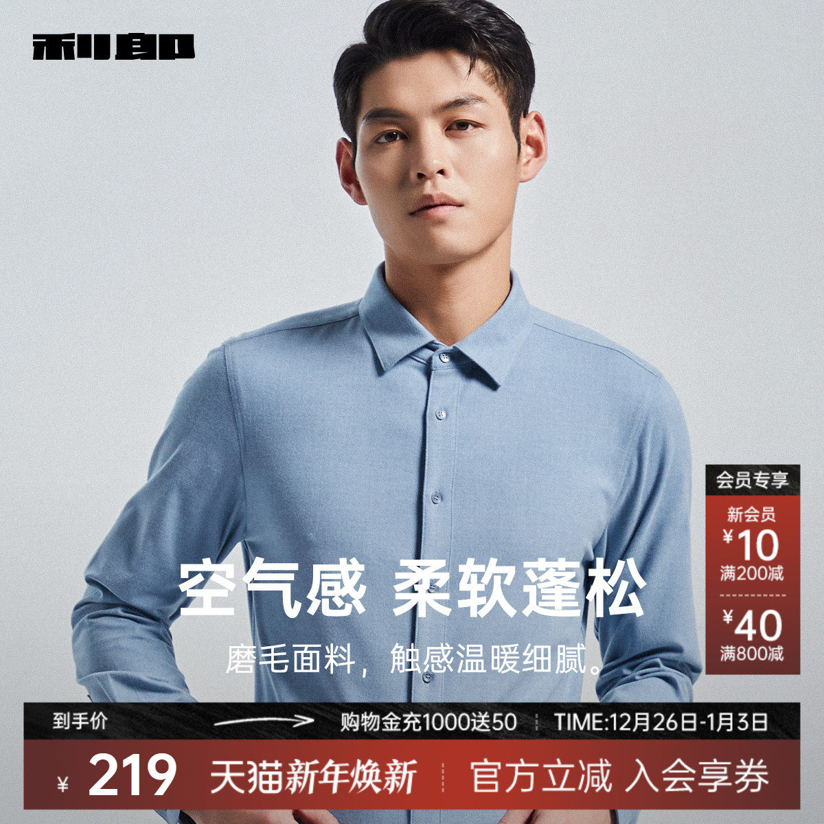 衬衫 利郎官方长袖 男士 商务休闲春秋季 衬衣男款 新款 磨毛质感保暖