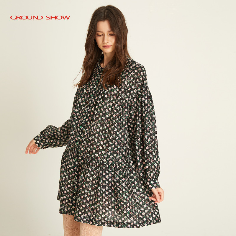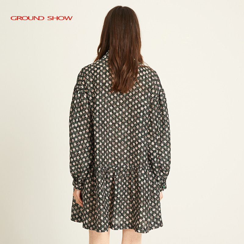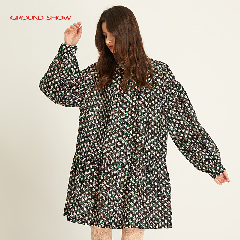 裙中长款 层次感碎花衬衫 印花苎麻连衣裙泡泡袖 阁兰秀2025春秋新款