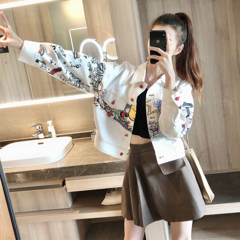 短款 涂鸦字母牛仔小个子外套女春秋款 大码 bf港味韩版 chic上衣 工装
