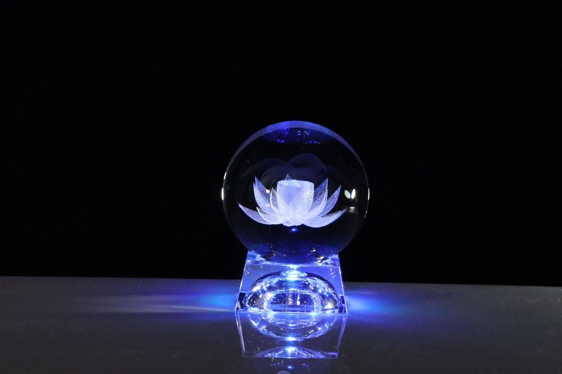 透明白水晶球摆件激光内雕莲花 饰品礼物 水晶球3D小礼品家居装
