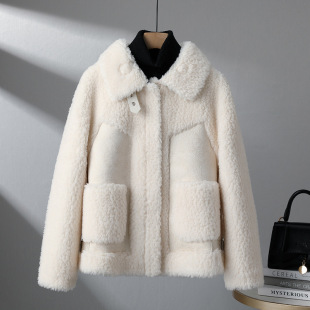 机车羊羔毛皮草外套女潮 颗粒羊剪绒大衣皮毛一体韩版 2025冬季 新款