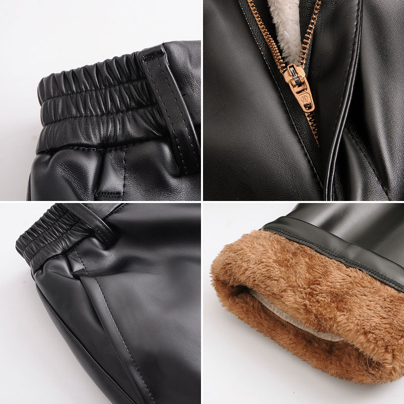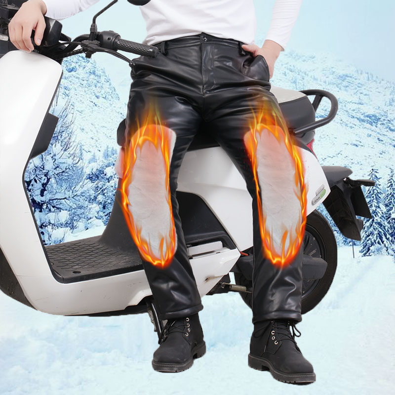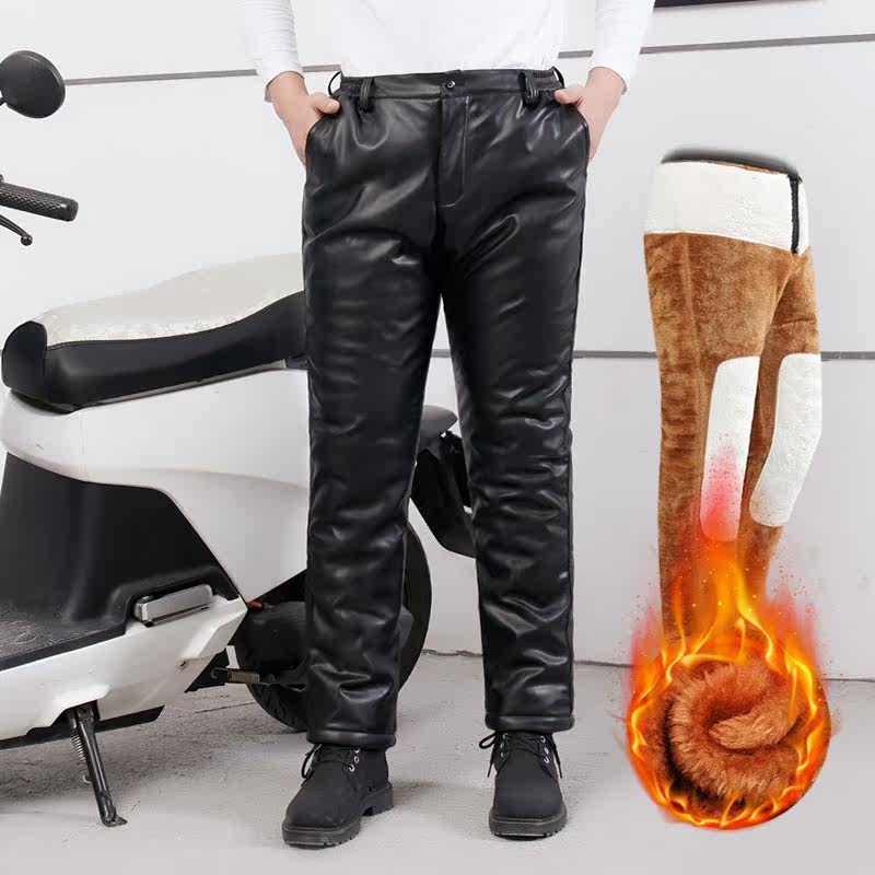 宽松加绒摩托车骑行防风保暖代驾皮棉裤 男式 加厚护腰护膝皮裤 冬季